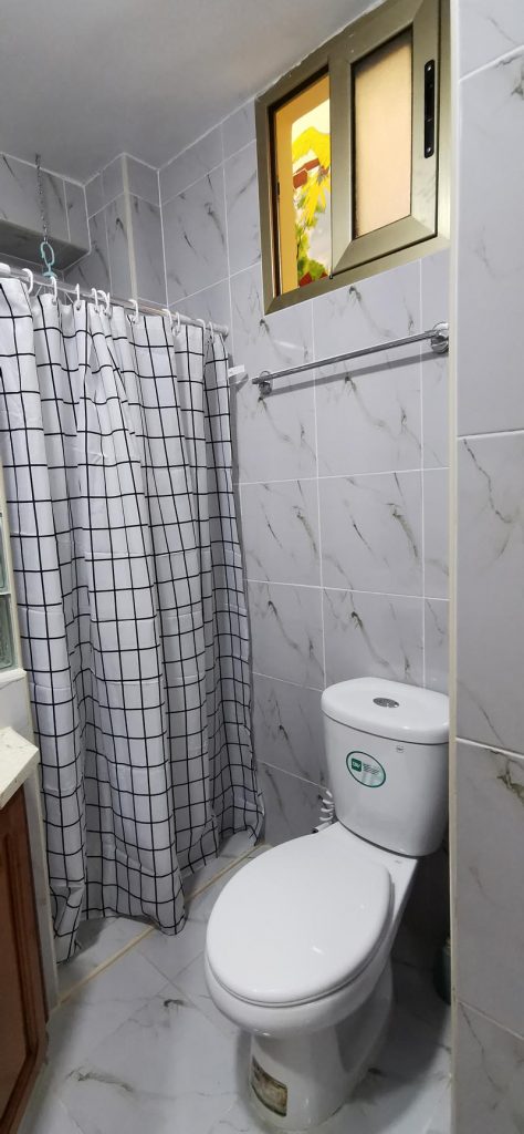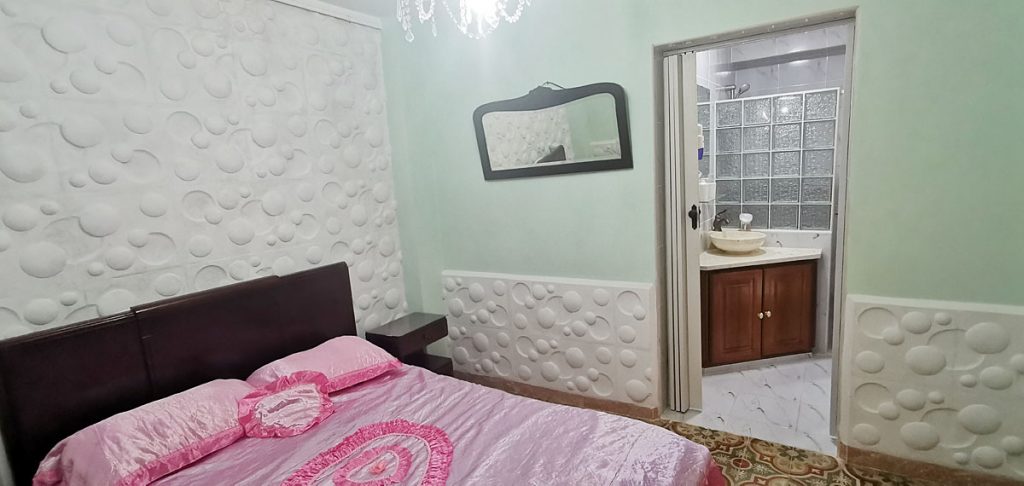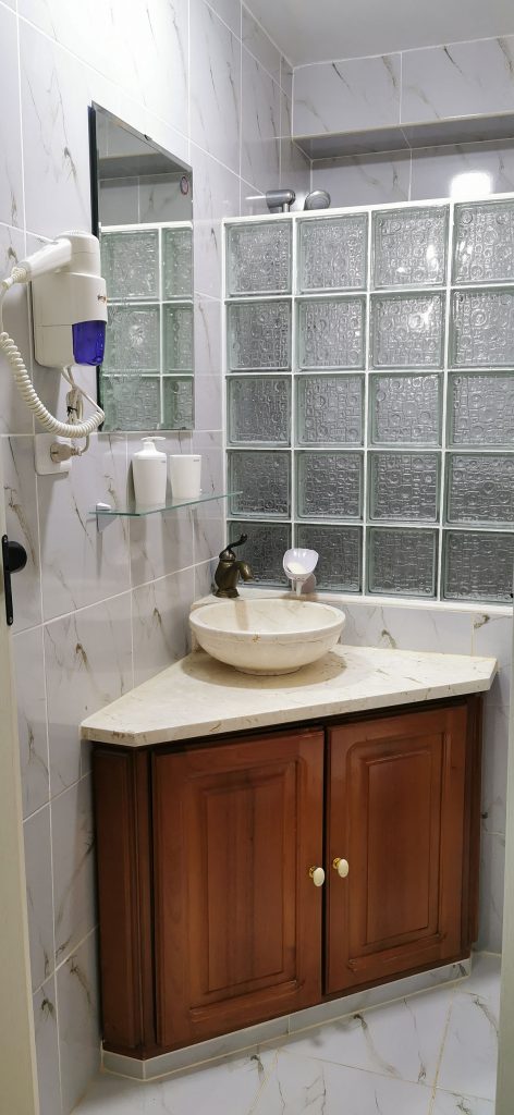 La chambre est équipée d’un ventilateur, d’une climatisation et un téléviseur.
